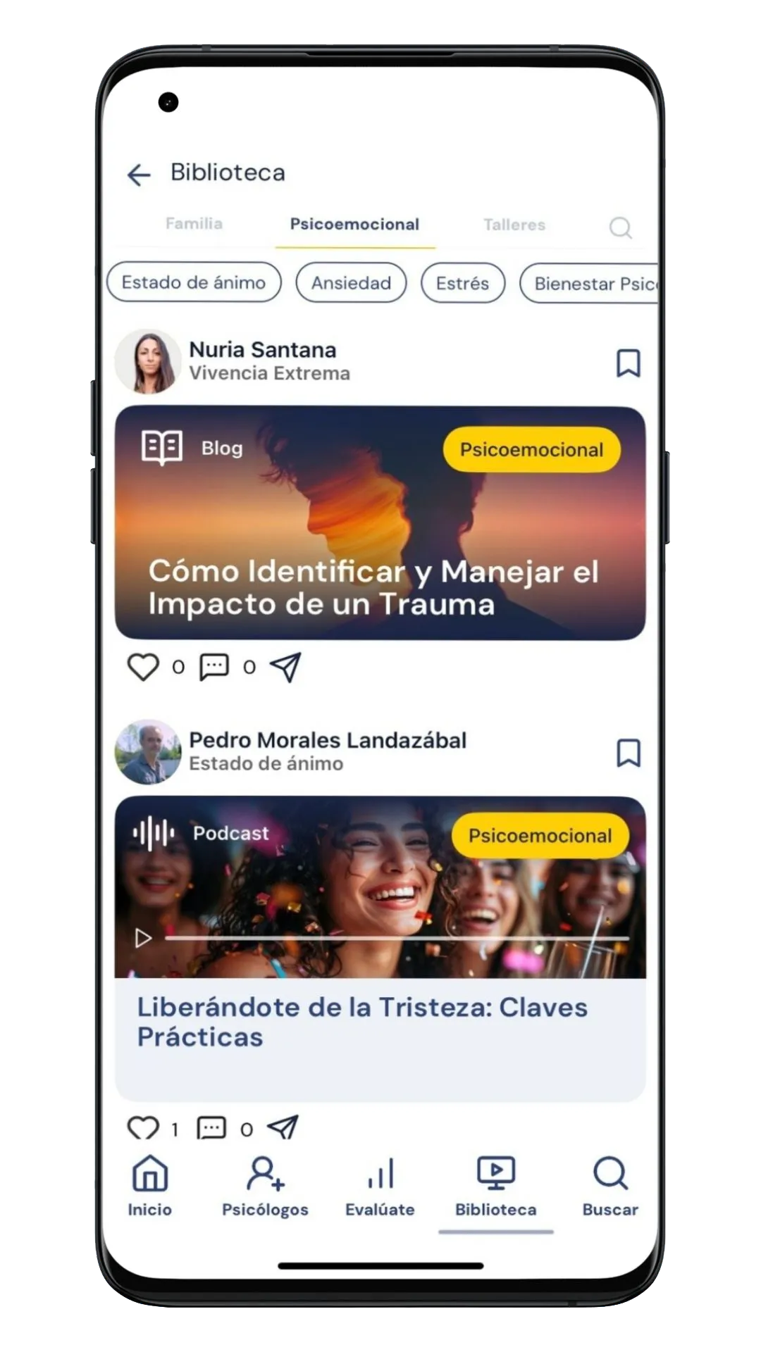 Ejercicios, visualizaciones y series guiadas por psicólogos para superar bloqueos, reducir ansiedad y ganar claridad emocional.