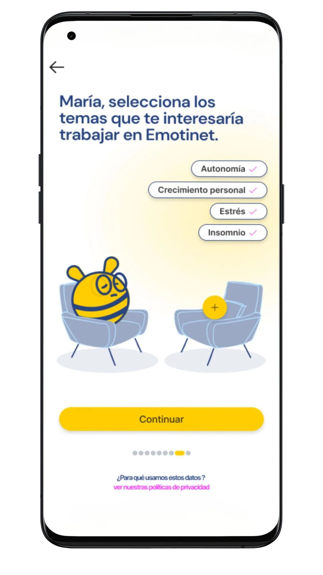 Emotinet no pretende sustituir la terapia tradicional, sino complementarla. Nuestra app ofrece herramientas y apoyo para reducir el estrés, la ansiedad y mejorar el bienestar emocional. Si necesitas ayuda adicional, Emotinet también proporciona acceso a psicólogos expertos de nuestra red de profesionales.